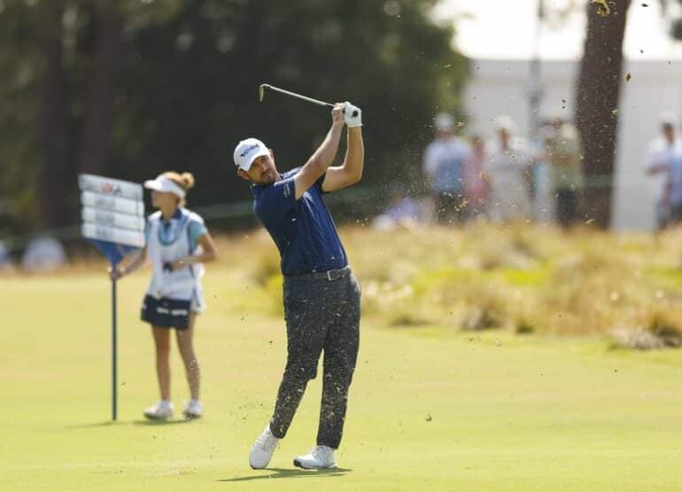 En position de scorer la meilleure carte de l’histoire ici à Pinehurst en mode US Open, Patrick Cantlay (parti du 10) s’est contenté du par sur le par 3 du 9 mais a signé son premier tour avec un excellent 65 (-5) fort de six birdies pour un seul bogey. Il égale ici les deux 65 claqués par Martin Kaymer il y a dix ans lors des deux premiers tours de l’US Open 2014 (avant de l’emporter le dimanche avec un score de -9).