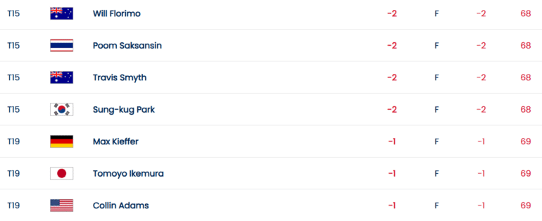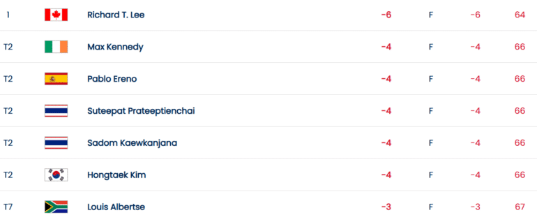 C’est le Canadien de l’Asian Tour, Richard T. Lee, qui remporte cette première session avec un solide 64 (-6) sans bogey. Se qualifient également l’Américain Chase Koepka, petit frère de Brooks, et le Danois Lucas Bjerregaard, 7es à -3 (67). Cela passe aussi pour l’Allemand Maximilian Kieffer et l’Autrichien Matthias Schwab, 19es à -1.