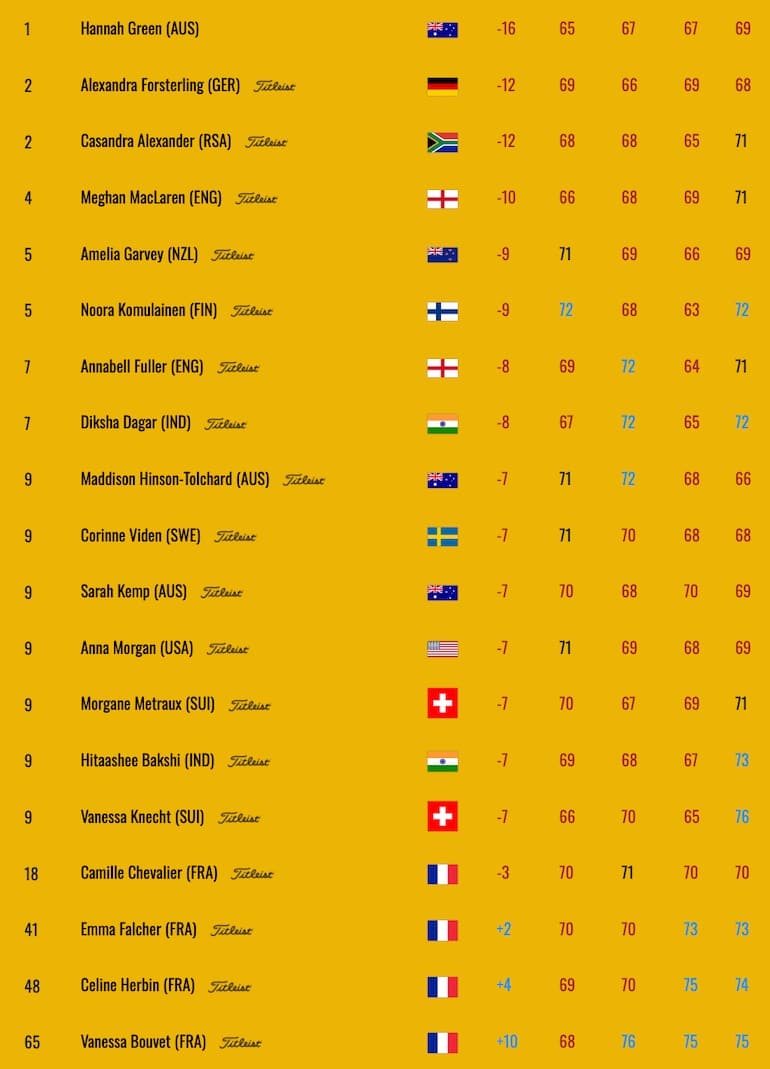 Céline Herbin a certainement accusé le coup après un top 15 et un top 10. La Normande a terminé à la 48e place après deux dernières cartes de 75 et 74.