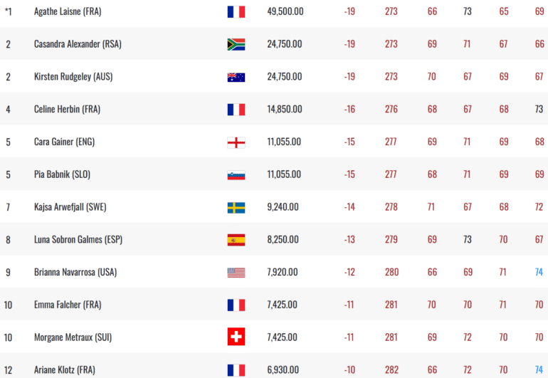 Un mois et demi après son premier succès sur le Ladies European Tour au Ford Women’s NSW Open (1er mars) et une 2e place au Women’s Australian Open le 15 mars, Agathe Laisné, 26 ans, revenue en « Europe » après une saison 2024 à oublier sur le LPGA Tour et un échec sur l’Epson Tour 2025 (hors du top 15 final), s’empare des commandes de l’ordre du mérite. Devant… Casandra Alexander !