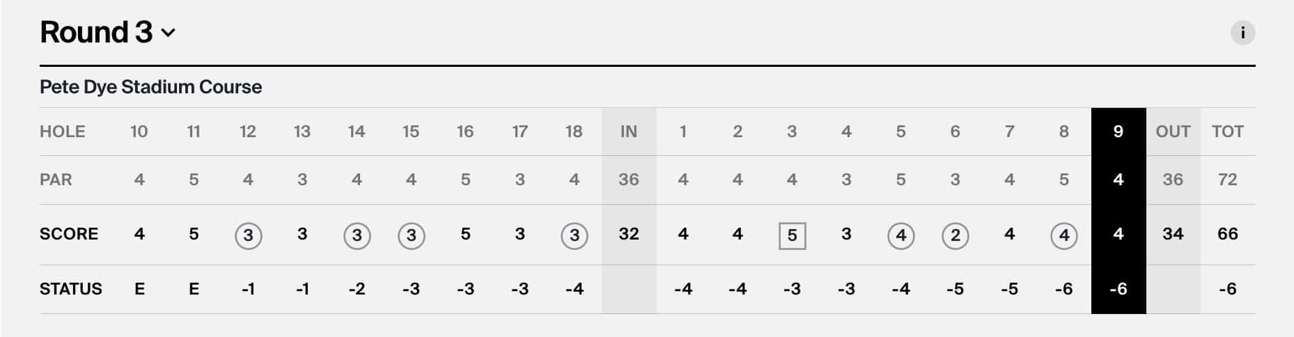 Auteur d’une carte de 66, soit deux coups de mieux que n’importe quel autre joueur engagé sur le Pete Dye Stadium Coure, Adrien Saddier fait un bond au classement et se hisse dans le top 40. Il sera donc bien présent au départ du 4e tour dimanche toujours sur ce parcours qu’il semble apprécier !