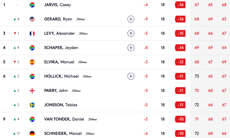 Patient sur les premiers trous de l’aller de ce par 72 de l’Heritage La Réserve Golf Links à la fois très scénique et très piégeux, l’actuel 546e joueur mondial a enchaîné deux birdies aux trous 4 et 6 avant de chuter sur le 9, l’un des endroits les plus difficiles à négocier de ce parcours dessiné par Louis Oosthuizen. Une hésitation sur le fer à utiliser sur son 2e coup, une balle trop longue au-delà du green et un chip trop court l’ont ici contraint à concéder son seul bogey de la journée. Il s’est alors retrouvé à trois coups derrière Jarvis, seul en tête, mais a su sur le retour réduire son déficit avec quatre nouveaux birdies, dont un dernier sur le pourtant très compliqué green du 18. Il jouera en dernière partie avec les deux hommes de tête. Début du bras de fer à 9h25 (6h25 en France) !