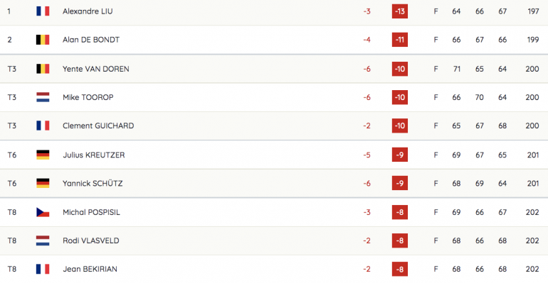 Il n’est pas le seul français à monter sur le podium. Clément Guichard s’est ainsi emparé de la troisième place (ex-aequo) du tournoi. Il pourra toutefois regretter sa fin de parcours où il aura concédé un double et un bogey, respectivement au 13 et au 15.