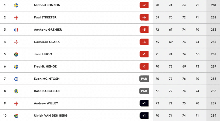 Dans le top 4 après 54 trous, celui qui compte une centaine de départs sur l’HotelPlanner Tour (ex-Challenge Tour) a tenu bon lors du dernier tour avec une carte de 70 (-2), malgré trois bogeys consécutifs entre le 13 et le 15. Il a terminé à deux longueurs du Suédois Michael Jonzon et à une de l’Anglais Paul Streeter. Quatrième, le Nord-Irlandais Cameron Clark évoluera lui aussi sur le Legends Tour.
