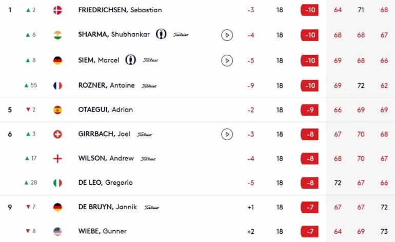 Revenu à la fin du mois de mai au Soudal Open après trois mois d’absence en raison d’une blessure à la hanche, Marcel Siem a posté un solide 66 (-5), suffisant pour rejoindre le Racingman tout en haut du leaderboard. L’Indien Shubhankar Sharma s’est lui aussi invité à la fête grâce à un beau 67 (-4) avant que le Danois Sebastian Friedrichsen n’imite ce joli petit monde avec son 68 (-3) du jour.