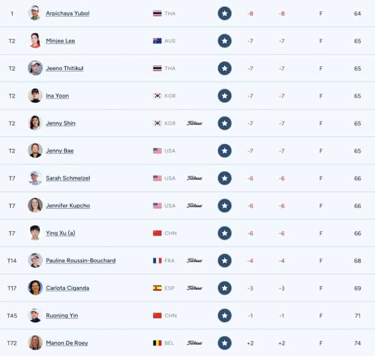 C’est trois de plus que Minjee Lee, qui a cependant apprécié sa partie « tranquille » et l’absence de bogeys sur sa carte. « Compte tenu de l’état des greens et des conditions, je m’en suis bien tirée puisque j’ai réussi à réaliser sept birdies, donc ça a été une bonne journée pour moi », a déclaré l’Australienne.