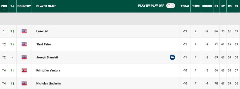Son dernier tour sanctionné par une carte de 71 le fait reculer à la 14e place à 7 coups du vainqueur l’ancien pensionnaire du circuit principal Luke List.