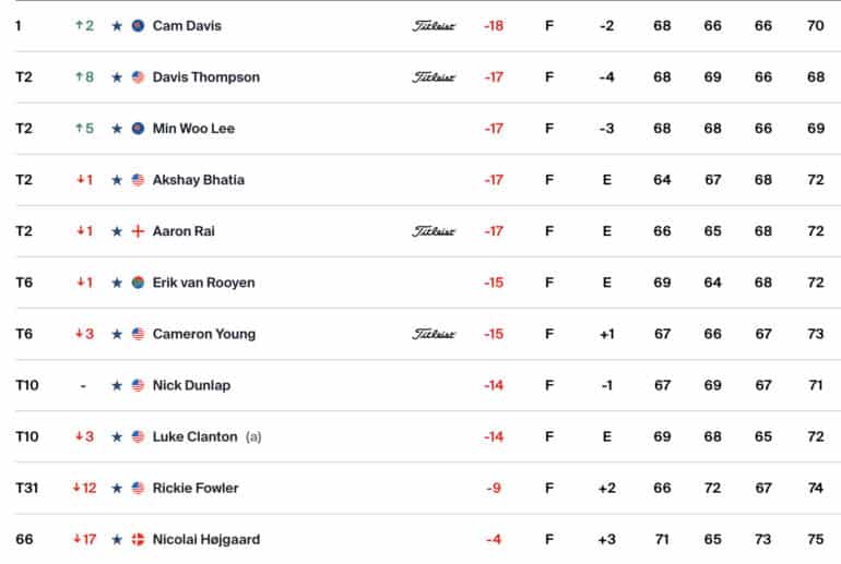 Des leaders, il y a en au beaucoup ce dimanche. Plusieurs hommes se sont tour à tour succédé en haut du leaderboard avant ce malheureux épilogue qui a offert la victoire à l’Australien Cameron Davis, sacré pour la deuxième fois dans ce tournoi. Davis dont le meilleur résultat sur ses sept derniers tournois était une 38e place au Wells Fargo Championship…