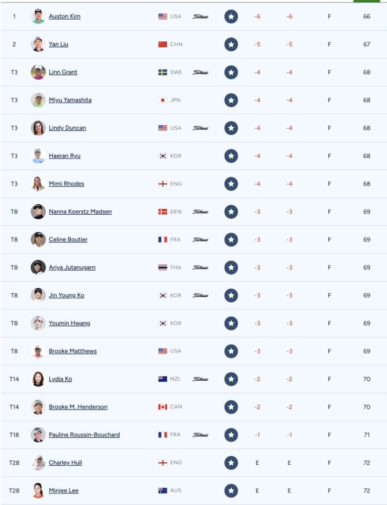 Respectivement 18e et 32e en Thaïlande la semaine dernière les deux joueuses de tête Auston Kim (-6) et Yan Liu (-5) ont en effet un palmarès pour le moment vierge de victoire.
