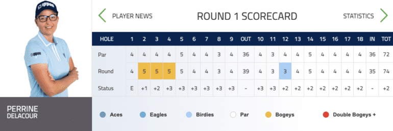 Perrine Delacour a également réussi son premier tour. Elle aussi en difficulté en début de journée (trois bogeys consécutifs entre le 2 et le 4), la golfeuse de l’Aisne a su serrer le jeu et enregistrer un birdie au 12. Celle qui a remporté son premier tournoi sur le LET au printemps est devant la ligne du cut à la 48e place avec Albane Valenzuela et Megan Khang.