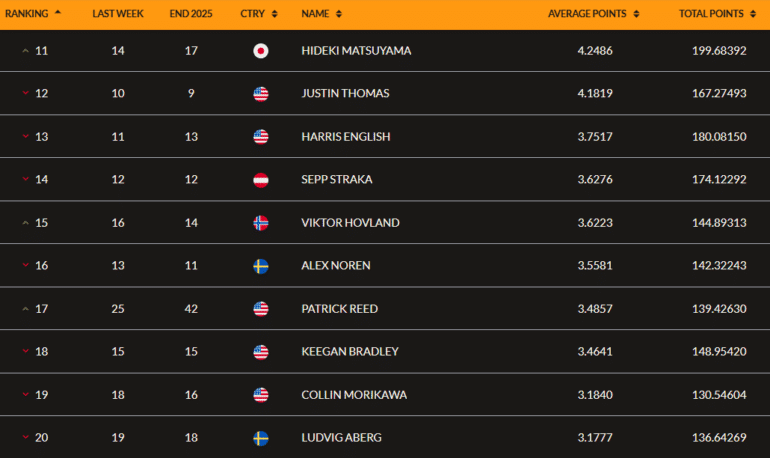 L’Américain que nous avions vraiment découvert en juillet dernier quand il s’était imposé au Genesis Scottish Open (co-sanctionné avec le DP World Tour) s’installe derrière Tommy Fleetwood (4e) mais devant Russell Henley (6e). A la fin de l’année 2025, il occupait la 28e place mondiale.