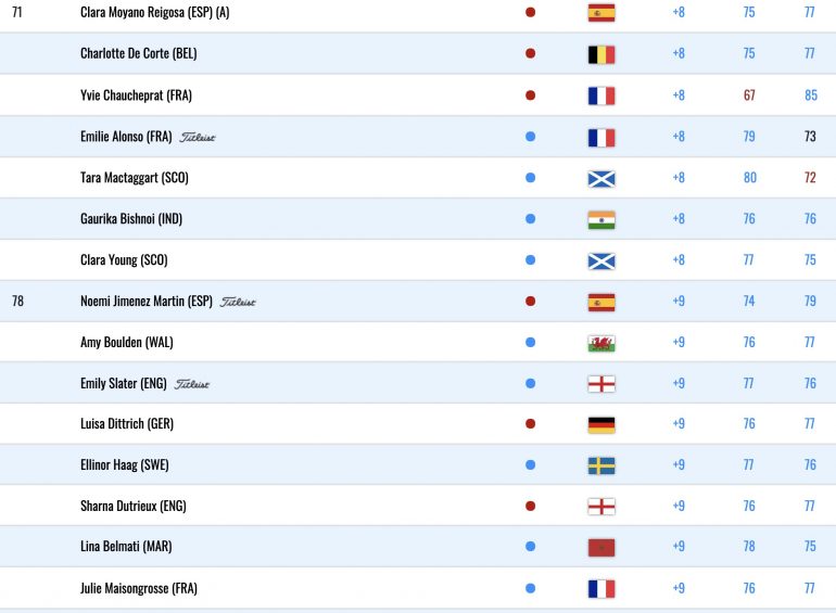Une issue qui se profile aussi pour Emma Ambroise (+13, 113e), Julie Berton (+14, 117e) et Emie Peronnin (+18, 125e), dans l’obligation de réaliser deux très grosses journées pour espérer obtenir une bonne catégorie sur le LET la saison prochaine.