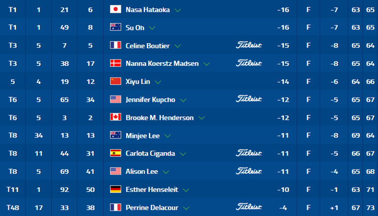 Trois golfeuses occupaient le fauteuil de leader du Honda LPGA Thailand après 18 trous avec un score de -9. Si la jeune Allemande Esther Henseleit sort du top 10, l’Australienne Su Oh et la Japonaise Nasa Hataoka ont réussi à conserver la première place à -16, après un deuxième tour retardé d’une heure et demi par les orages. Les deux jeunes femmes n’ont toujours pas concédé le moindre bogey sur le parcours du Siam Country Club. L’Australienne s’est propulsée en tête sur le 36e trou grâce à un eagle « donné » sur le par 5 du 18, qui aurait bien pu se transformer en albatros ! Imperturbable, la golfeuse asiatique a terminé par un birdie de deux mètres pour rejoindre Oh en tête avant le troisième tour.