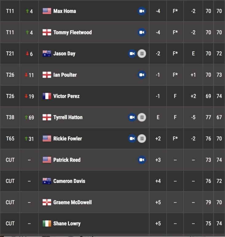 On retiendra aussi que le tenant du titre, Tyrrell Hatton, a rectifié le tir vendredi après une très mauvaise entame de tournoi la veille. Sa carte de 67, plus conforme à son statut de n°1 de la Race to Dubai, lui permet de revenir dans le par et de franchir le cut. Performance qu’a également réussi in-extremis Rickie Fowler grâce à 3 birdies sur 6 derniers trous.