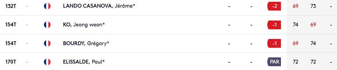 Meilleur français au leaderboard très provisoire, Clément Sordet pointe à la 21e place à -12 après 14 trous joués. Mathieu Decottignies-Lafon en a, lui, terminé avec une carte de 68 (-4). Le Nordiste est 28e à -11 (205) avec Félix Mory, qui a encore trois trous à négocier…