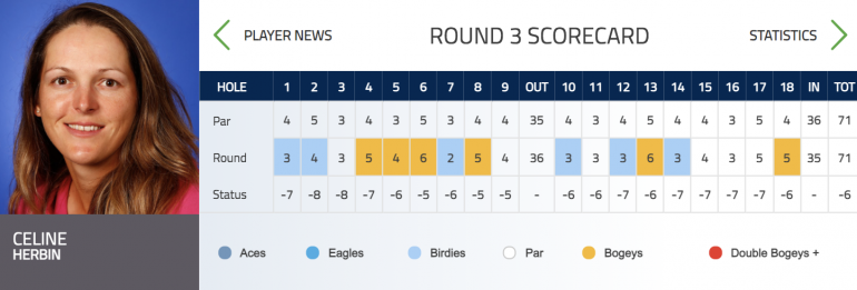 C’est également le cas de Perrine Delacour qui a signé un excellent 68 pour se hisser à la 11e place aux côtés de Céline Boutier à sept coups de la tête. La joueuse de l’Ailette dans l’Aisne a notamment bouclé son 3e tour avec trois birdies sur les quatre derniers trous ! De bon augure pour le 4e tour.