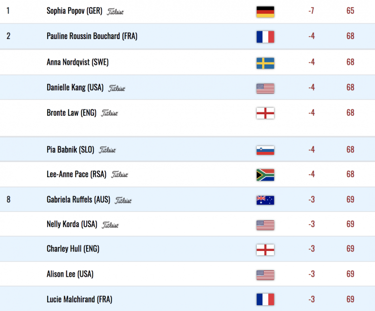 Astrid Vayson De Pradenne a également joué sous le par avec un score de 71 (-1). À la 19e place, la Française est juste derrière Jessica Korda et Lexi Thompson (-2, 13e).