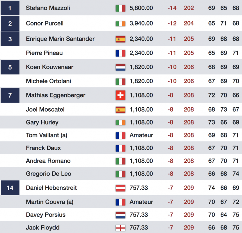 Un troisième amateur tricolore s’est inséré dans le top 20, il s’agit de Julien Sale, 19e.