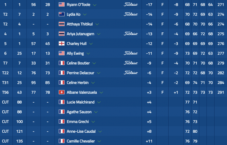 On s’attendait à une dernière journée serrée, l’Américaine Ryann O’Toole a mis tout le monde d’accord avec une superbe carte de 64. Céline Boutier a également réussi son dimanche pour prendre la 7e place finale.