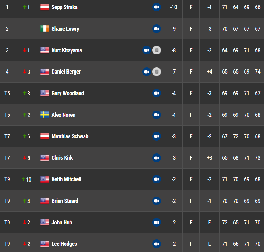 Alors que Shane Lowry, désormais leader et bien aidé par un Daniel Berger méconnaissable, marquait le pas sans convertir ses occasions de birdies, Sepp Straka distillait, lui, trois petites merveilles du 14 au 18 pour posséder au recording un point d’avance sur le duo américano-irlandais.