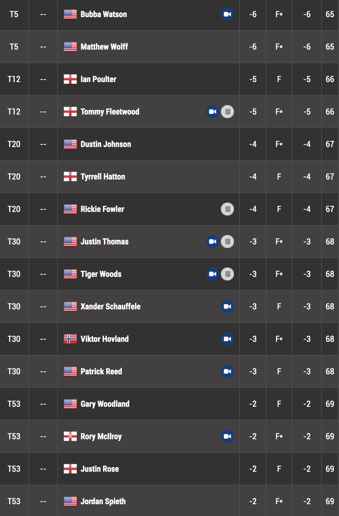 Leader à -8 après 16 trous, Tommy Fleetwood a lâché du lest sur ses derniers trous avec un bogey et double bogey (-5 total). A noter que Sebastian Munoz, la nouvelle fierté de la Colombie, a démarré par… 7 birdies sur ses 7 premiers trous avant de finir à -6.
