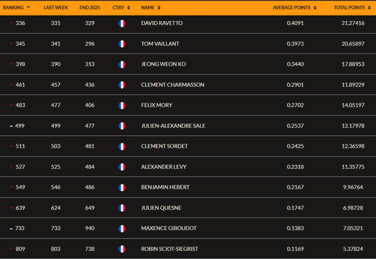 Côté tricolore, toujours au repos après une semaine placée sur le physique du côté de Tignes en compagnie de son coach en la matière, David Baudrier, Adrien Saddier, qui effectuera son retour le 7 mai sur le PGA Tour au tournoi alternate du Myrtle Beach Classic, reste dans le top 100. Le Haut-Savoyard perd néanmoins une place : 97e. Il est toutefois toujours en course pour valider son ticket pour le PGA Championship à Aronimink Golf Club le 14 mai prochain !