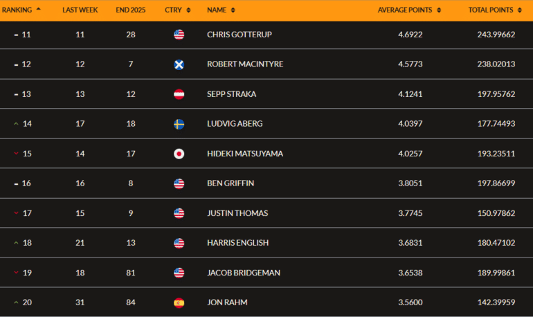 L’autre grosse info de ce début de semaine, c’est le grand retour de Jon Rahm dans le top 20 mondial. Une première pour celui qui vient de l’emporter au LIV Golf Mexico depuis 8 décembre 2024 où il occupait déjà cette 20e place. Deuxième sur cette étape mexicaine du Circuit saoudien, David Puig fait lui aussi une belle opération comptable en frappant à la porte du top 60 (61e, +21) qualificatif pour l’U.S. Open.