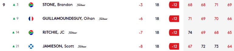 Il finit juste devant Oihan Guillamoundeguy, auteur d’une splendide carte de 66. Le Landais, 21 ans, accroche la 9e place à -12 (276). Pas mal pour ses débuts officiels au plus haut niveau. On attend la suite avec beaucoup d’impatience. A Bahreïn, très vraisemblablement, le 29 janvier prochain !