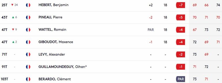 La lutte s’annonce donc âpre sur le Royal Cape Golf Club ce dimanche. 29 joueurs se tiennent en quatre coups seulement. Benjamin Hébert, co-leader à l’issue du 2e tour, 25e à -7 après avoir rendu un difficile 74 (+2) dans le vent des parties de l’après-midi, peut donc lui aussi y croire !