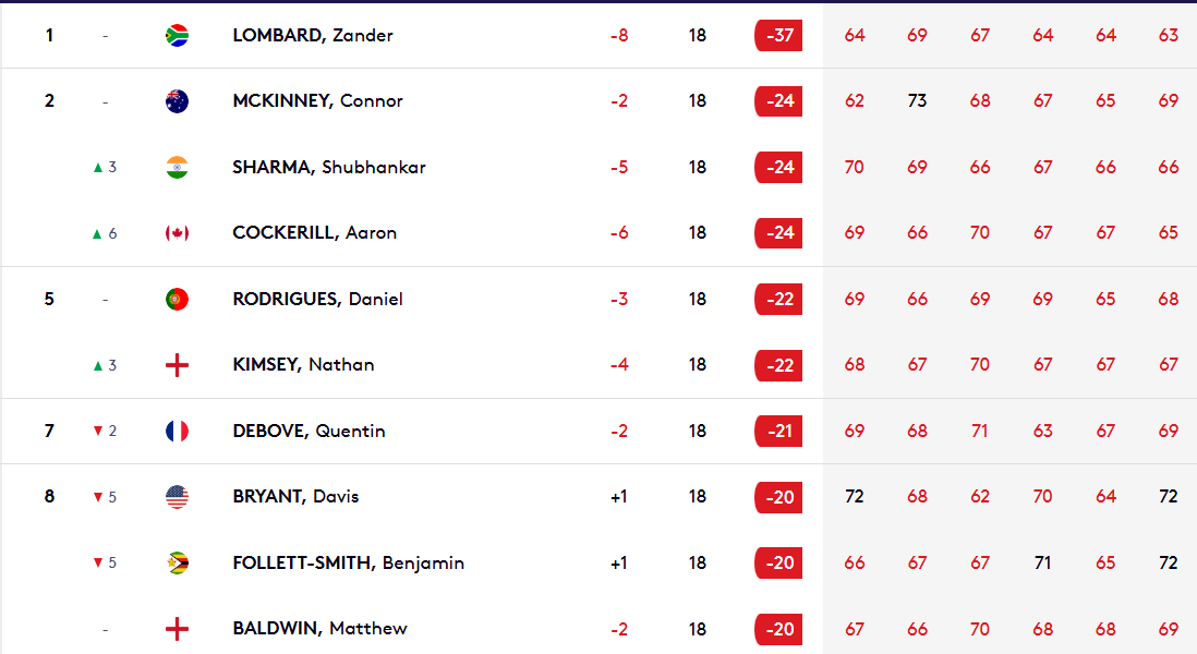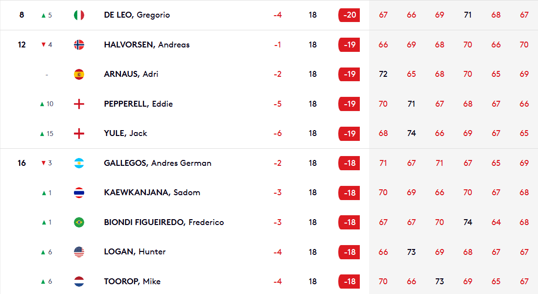 A noter les retours sur l’élite des expérimentés Nathan Kimsey (5e), Matthew Baldwin (8e) Adri Arnaus ou encore Eddie Pepperell (12e).