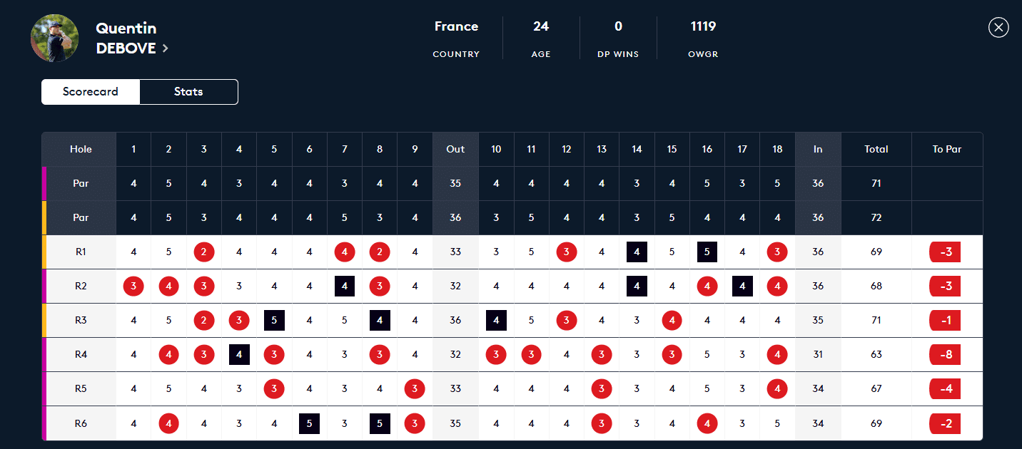 Lui qui disputera aussi un peu plus tard cette année le Stage II des cartes du PGA Tour (2-5 décembre), fait un immense pas en avant dans sa carrière en découvrant le plus haut niveau. Le voilà désormais récipiendaire d’une catégorie 18 sur le DP World Tour grâce à six tours bouclés en -21 total. Il aura désormais la lourde tâche de conserver ses droits de jeu avec cette catégorie inconfortable, ce qu’un seul golfeur tricolore a su faire auparavant.