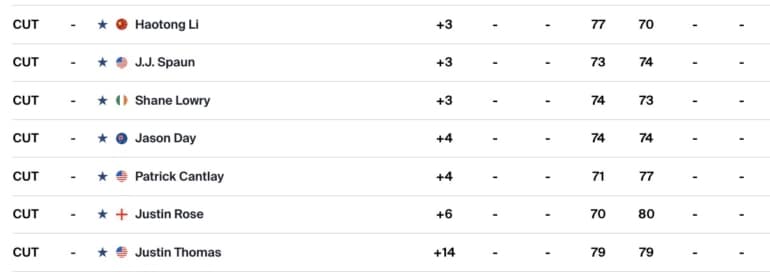 A noter aussi les éliminations sans gloire de Justin Rose et J.J. Spaun. L’Anglais et l’Américain ont manqué leur deuxième consécutif, le 3e en 5 tournois cette saison.