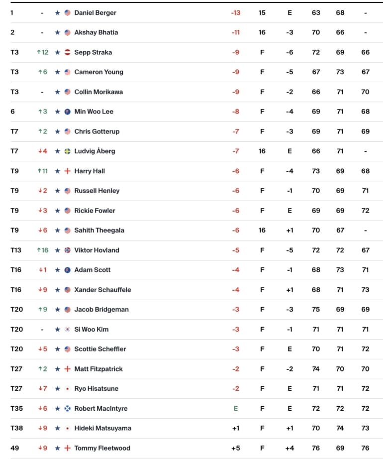 Il ne sera cependant pas le seul à pouvoir prétendre jouer les trouble-fêtes dimanche. En effet avant la corne de brume actionnée par les officiels c’est l’Autrichien Sepp Straka qui a opéré le rapproché au classement le plus notable grâce à une carte de 66 sur laquelle figure l’un des 5 birdies du jour enregistré sur le 18.