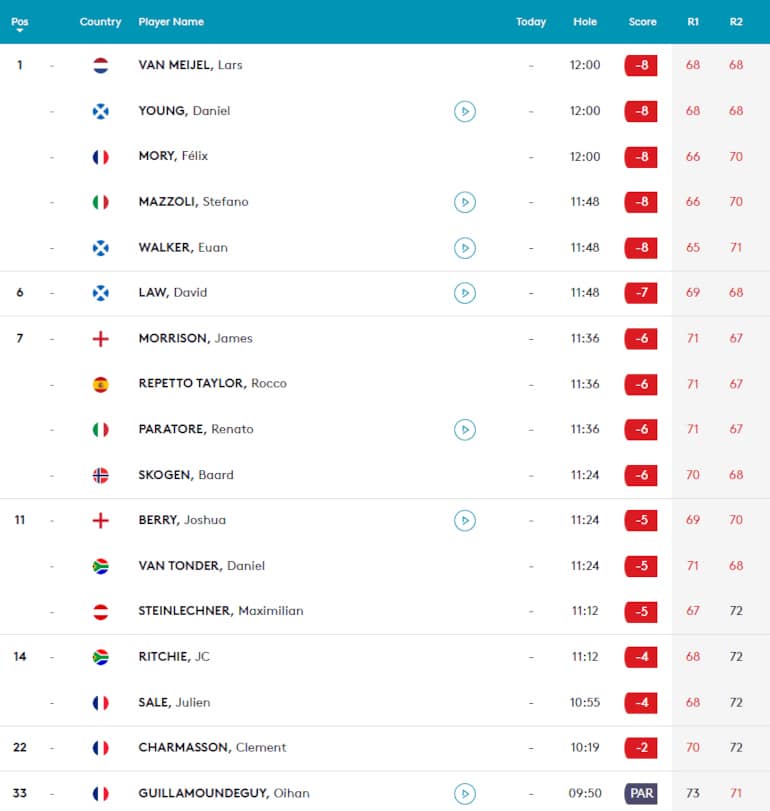 À mi-tournoi de cette finale de l’HotelPlanner Tour (ex-Challenge Tour), les quatre Tricolores sont toujours en lice pour jouer sur le DP World Tour la saison prochaine ! C’est Félix Mory qui réussit pour le moment la plus belle finale de la deuxième division européenne en s’installant en tête après 36 trous.