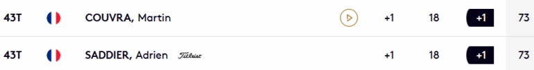 A l’image de Marco Penge, encore malade en début de semaine et clairement éteint face à la maestria de McIlroy, Martin Couvra et Adrien Saddier sont, eux aussi, passés à côté de ce premier tour. Leur « baptême du feu » à Dubaï dans cette finale. Les deux seuls français engagés dans cette édition 2025 ont ainsi rendu la même carte de 73 (+1). Ils s’envoleront dans ce 2e tour à dix minutes d’intervalle : 8h45 (5h45 en France) pour Saddier (avec le Sud-Africain Shaun Norris), 8h55 (5h55 en France) pour Couvra (avec l’Anglais Aaron Rai).
