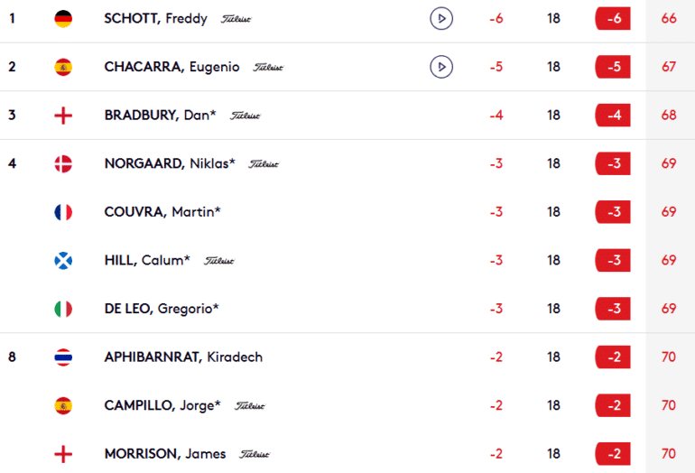Vainqueur le 1er février au Bahraïn Championship, l’Allemand Freddy Schott (photo) prend les commandes à -6 (66) du très difficile par 72 du DLF G&CC de New Delhi, juste devant le tenant du titre, l’Espagnol Eugenio Chacarra. Parti à 7h15 ce jeudi (2h45 en France), Martin Couvra s’en est lui aussi bien sorti dans ce Hero Indian Open 2026. Le Français est 4e ex aequo à -3 (69).