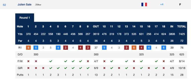 Julien Sale, brillant vainqueur de son 1er tournoi sur l’Asian Tour la semaine passée aux Philippines, a souffert avant de réussir à rectifier le tir sur ses 4 derniers trous avec trois birdies pour rendre une carte de 76(+4).