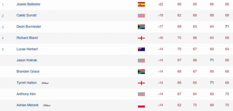 Mais sa dernière carte postée (69) demeure insuffisante. La faute en revient principalement à Josele Ballester, auteur d’un magnifique 65 (-6) sans bogey qui lui permet de finir seul devant avec un score total de -22. Soit trois coups d’avance sur sa principale victime. Et cinq sur le Sud-Africain Dean Burmester, si conquérant entre jeudi et vendredi (63 et 64) et clairement en panne ce samedi avec un tout « petit » 71 (par).