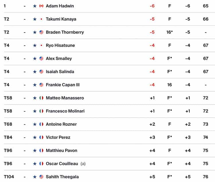 Le leader est le Canadien Adam Hadwin (photo), déjà vainqueur sur le PGA Tour, en 2017 lors du Valspar Championship. Le 228e mondial a joué l’après-midi, mais son 65 nanti de six birdies et un bogey reste un petit exploit. Il devance d’un coup deux autre joueurs qui ont terminé leur premier tour en fin de journée, le Japonais Takumi Kanaya et l’Américain Braden Thornberry.