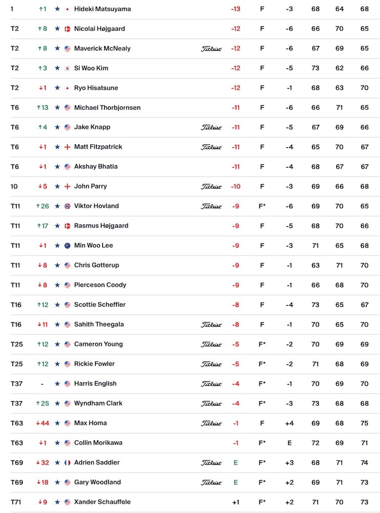 Même s’il a été moins spectaculaire que la veille, Hideki Mastuyama a réussi à se hisser en tête du WM Phoenix Open à la faveur d’une troisième carte de 68 (-3) ponctuée par cinq birdies (contre deux bogeys) sur le Stadium Course du TPC Scottsdale.