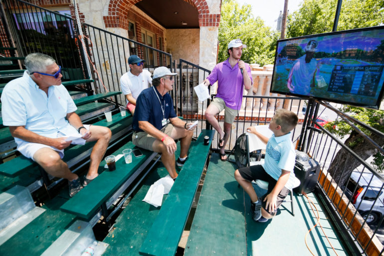 La demeure des Henggeler surplombe le départ du 16 du Colonial Country Club de Fort Worth, au Texas, du coup père et fils, qui généralement assistent au tournoi, ont construit une tribune pour regarder le tournoi. Ce sont donc officieusement les «premiers fans» à assister à un événement sportif en direct depuis le début de la pandémie.