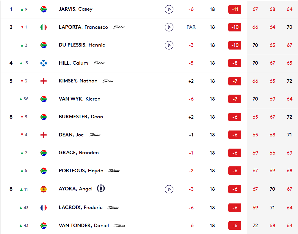 Vainqueur du Magical Kenya Open la semaine dernière, le Sud-Africain Casey Jarvis est bien parti pour remettre ça cette semaine pour son open national. L’homme de 22 ans, tient en -11 total une avance d’un coup avant le dernier tour. Frédéric Lacroix est dans le top 10.