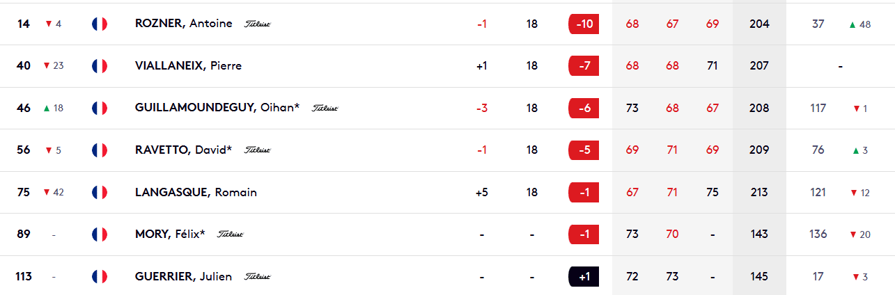 Son dimanche en forme de 63 (-7) avec huit birdies pour une seule scorie lui permet de gagner 32 places au classement pour aller chercher le premier top 10 de sa saison en -12 total. Deux longueurs derrière, Antoine Rozner manque le top 10 d’un rien. Il termine 14e avec trois cartes sous les 70.