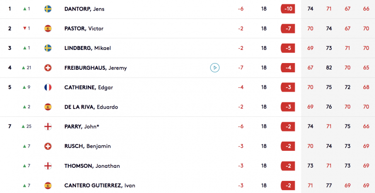 Il devance le leader de la veille, Victor Pastor, de trois coups et son compatriote Mikael Lindberg, premier à mi-parcours, de cinq points.