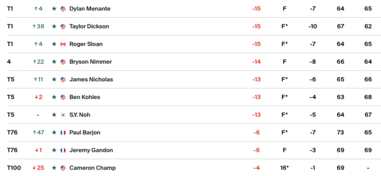 En témoignent les scores très bas des participants sur cet Ocean Course de l’Atlantis Paradise Island. Il fallait jouer -12 ou moins pour être dans le top 20 après seulement 36 trous. Le trio de tête composé de Dylan Menante, Taylor Dickson et Roger Sloan, est à -15.