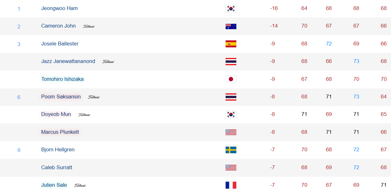 Vainqueur en -16 total de l’épreuve sur le tracé du Sentosa Golf Club malgré des pluies diluviennes dominicales, l’habitué du KPGA (le tour professionnel Sud-Coréen) remporte le premier titre de sa carrière sur ce nouveau circuit après seulement 16 départs. Il a aussi le bonheur de voir son nom inscrit pour le prochain The Open au Royal Birkdale, qu’il découvrira à l’âge de 32 ans.