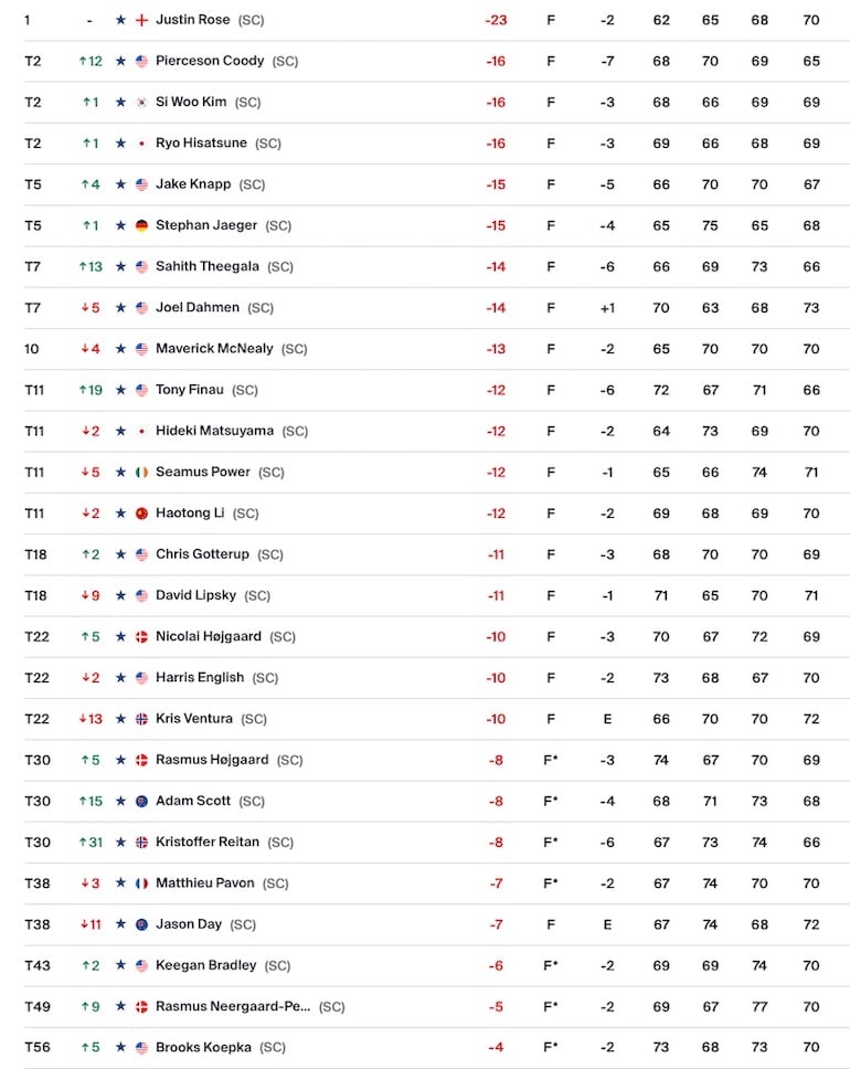 Malheureusement, contrairement au vœu pieu de Joel Dahmen, Justin Rose n’a pas oublié de régler son réveil. Ni trop rendu visite au gros rough sur le retour du South Course.