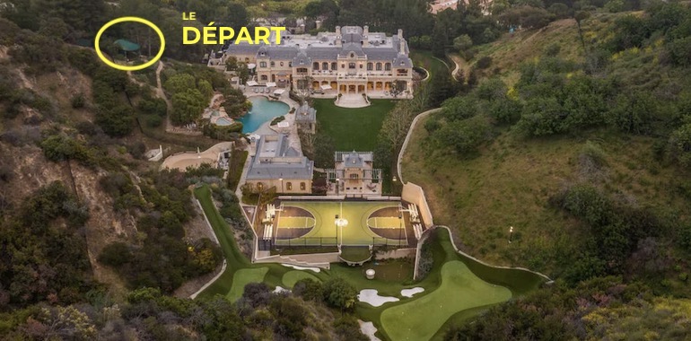 Caché derrière des portes géantes et protégé par un système de sécurité élaboré, le domaine se compose de cette immense maison principale, mais aussi d’une maison d’hôtes séparée, d’une piscine, d’un court de tennis, d’un skate park et surtout d’un complexe de golf de 5 trous.