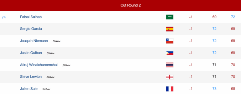 Unique Français à avoir effectué le déplacement jusqu’en Arabie saoudite, avant de rejoindre La Réunion pour le Championnat de France professionnel de double la semaine prochaine au Golf de Bourbon, Julien Sale est venu « mourir » à un coup d’un cut fixé à -1. Scénario identique pour Sergio Garcia et le tenant du titre, Joaquin Niemann. Cela ne passe pas non plus pour Talor Gooch, Cameron Smith et Dustin Johnson !