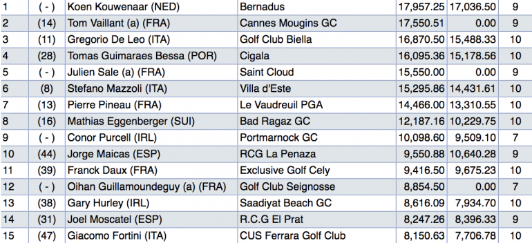 Avec cette victoire, Tom Vaillant s’installe à la deuxième place du classement général, à quelques points du leader, le Néerlandais Koen Kouwenaar. Si rien n’est joué dans un Ordre du mérite très serré après la 10e des 18 épreuves de la saison, Julien Sale, lui aussi amateur, occupe la cinquième et dernière place qualificative pour le Challenge Tour 2023.